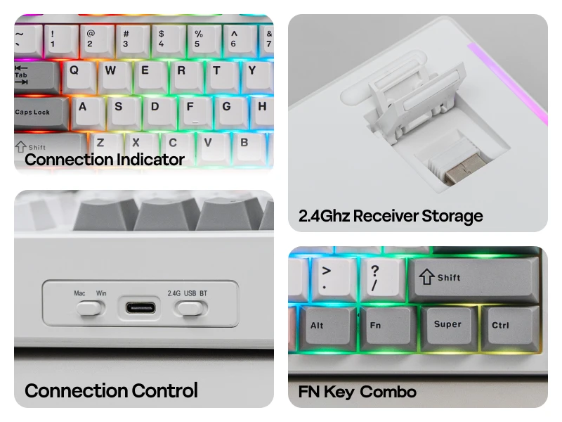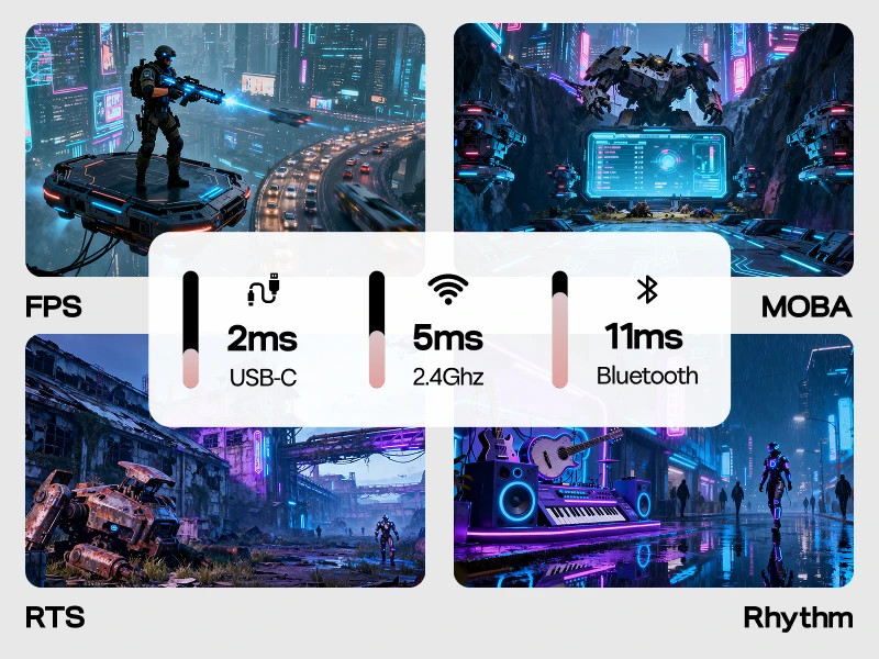 -Tri-mode connectivity: Type-C, Bluetooth & 2.4G Dongle