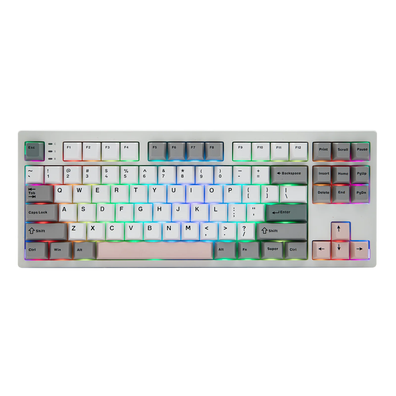 RGB: Yes, the TH87 RGB Backlit Keyboard has per-key adjustable south-facing LEDs, offering dynamic and static lights in RGB and singular colors.