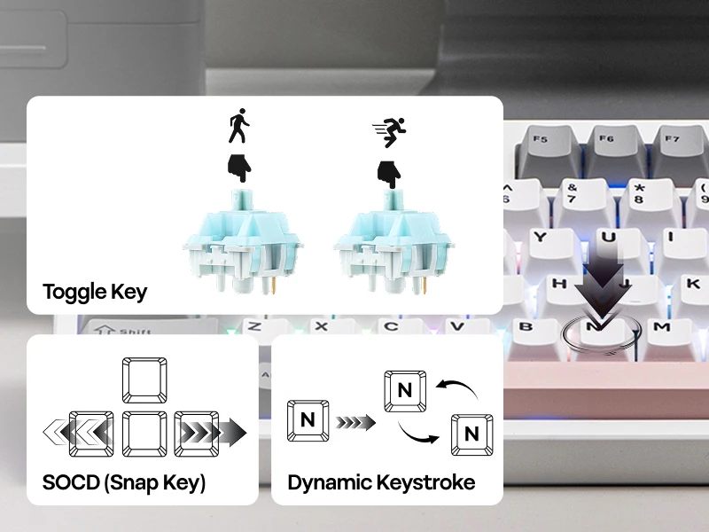 Switch Type: 5-pin Mechanical Switch, Silent, Linear, Pre-Lubed